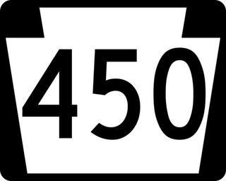 | Keywords: PA-450.svg 750 mm by 600 mm 30 in by 24 in Pennsylvania shield made to the specifications of the Manual on Uniform Traffic Control Devices MUTCD 2003 Edition sign M1-5 Uses the Roadgeek 2005 fonts United States law does not permit the copyrighting of typeface designs and the fonts are meant to be copies of a U S Government-produced work anyway Own 2006-11-29 TwinsMetsFan Public Domain Pennsylvania Route shields 450 | ||||