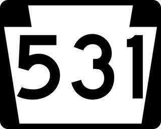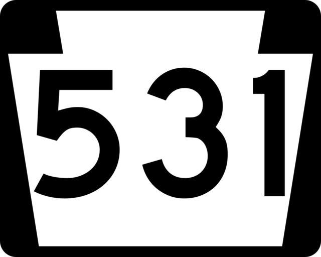 | Keywords: PA-531.svg 750 mm by 600 mm 30 in by 24 in Pennsylvania shield made to the specifications of the Manual on Uniform Traffic Control Devices MUTCD 2003 Edition sign M1-5 Uses the Roadgeek 2005 fonts United States law does not permit the copyrighting of typeface designs and the fonts are meant to be copies of a U S Government-produced work anyway Own 2006-11-13 TwinsMetsFan Public Domain Pennsylvania Route shields 531 Pennsylvania Route 531 531 number | ||||