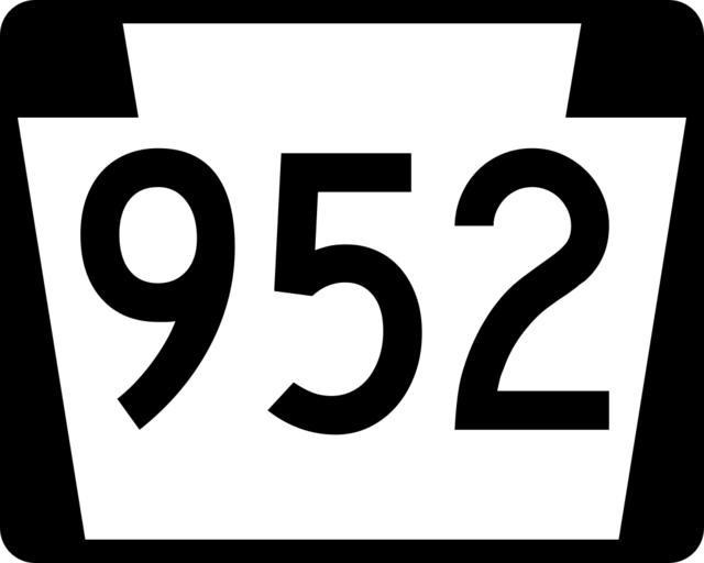 | Keywords: PA-952.svg 750 mm by 600 mm 30 in by 24 in Pennsylvania shield made to the specifications of the Manual on Uniform Traffic Control Devices MUTCD 2003 Edition sign M1-5 Uses the Roadgeek 2005 fonts United States law does not permit the copyrighting of typeface designs and the fonts are meant to be copies of a U S Government-produced work anyway Own 2006-11-27 TwinsMetsFan Public Domain Pennsylvania Route shields 952 | ||||