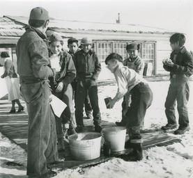 | Keywords: documentary photography documentaryphotography alaska children buildings men indigenous people indigenouspeople meyer elisabeth meyer elisabethmeyer people outdoor blackandwhite black and white Meyer, Elisabeth Group of men and children in front of a house. Alaska 1950s. Gelatin silver print, baryta NMFF.002537-30 Meyer, Elisabeth Group of men and children in front of a house. Alaska 1950s. Gelatin silver print, baryta NMFF.002537-30 | ||||