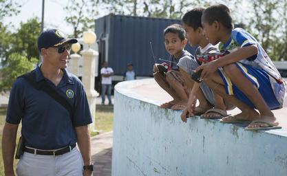 | Keywords: Pacific Partnership 160611-N-TR165-003.jpg en 160611-N-TR165-003 DILI Timor Leste June 11 2016 Capt Peter Roberts prospective commanding officer of USNS Mercy T-AH 19 greets local Timorese boys during a community relations event at Christo Rei Park The day long event which is part of Pacific Partnership 2016 had many activities to include face painting soccer volleyball and various other sports Pacific Partnership 2016 marks the sixth time the mission has visited Timor Leste since its first visit in 2006 Medical engineering and various other personnel embarked aboard Mercy are working side-by-side with partner nation counterparts exchanging ideas building best practices and relationships to ensure preparedness should disaster strike U S Navy photo by Mass Communication Specialist 2nd Class William Cousins/Released <br>Unit Defense Imagery Management Operations Center 2016-06-10 Petty Officer 3rd Class William Cousins https //www dvidshub net/image/2657247/pacific-partnership 160611-N-TR165-003 2016-06-14 06 58 UNDISCLOSED LOCATION PD-USGov-Military-Navy USNS Mercy T-AH-19 Pacific Partnership 2016 Images from DoD uploaded by Fæ |