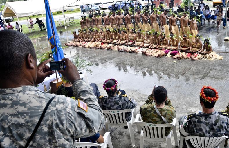 | Keywords: Pacific Partnership 2011 in Pohnpei DVIDS427660.jpg en Members of the Pacific Partnership 2011 team take photos of a local tribal dance during the closing ceremonies in the Federated States of Micronesia Pacific Partnership 2011 will visit the islands of Tonga Vanuatu Papua New Guinea Timor-Leste and the Federated States of Micronesia 2011-07-14 Photo by Kristopher Radder https //www dvidshub net/image/427660 110714-N-+++++-001 2011-07-14 08 04 POHNPEI EX PONAPE FM PD-USGov-Military-Navy Pacific Partnership 2011 People of the Federated States of Micronesia Images from DoD uploaded by Fæ |