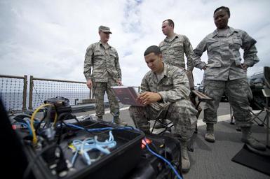 | Keywords: Pacific Partnership 2013 130518-N-WD757-004.jpg en U S Air National Guardsmen test a satellite communications dish aboard the amphibious dock landing ship USS Pearl Harbor LSD 52 in the Pacific Ocean May 18 2013 during Pacific Partnership 2013 Pacific Partnership is an annual deployment of forces designed to strengthen maritime and humanitarian partnerships during disaster relief operations while providing humanitarian medical dental and engineering assistance to nations of the Pacific U S Navy photo by Mass Communication Specialist 3rd Class Carlos M Vazquez II/Released 2013-05-18 Petty Officer 3rd Class Carlos Vazquez II https //www dvidshub net/image/944169 130518-N-WD757-004 2013-05-31 05 24 USS PEARL HARBOR LSD 52 AT SEA PD-USGov-Military-Navy USS Pearl Harbor LSD-52 Pacific Partnership 2013 Images from DoD uploaded by Fæ |