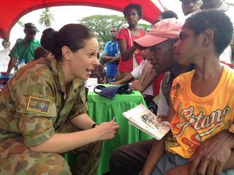 | Keywords: Pacific Partnership 2013 130615-N-ZZ999-004.jpg 3 34 46 0 S 143 38 13 0 E alt 27 000004_source exif_heading 206 97093 en Royal Australian Air Force Cpl Carlie Power speaks to patients during a Pacific Partnership 2013 health fair Working at the invitation of each host nation Pacific Partnership is joined by partner nations that include Australia Canada Colombia France Japan Malaysia Singapore South Korea and New Zealand to strengthen disaster response preparedness around the Indo-Asia-Pacific region 2013-06-15 U S Navy photo by Lt j g Paul Newell/Released https //www dvidshub net/image/963391 130615-N-ZZ999-004 2013-06-28 20 22 WEWAK PG PD-USGov-Military-Navy Pacific Partnership 2013 Images from DoD uploaded by Fæ |