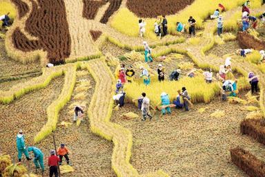 Keywords: Japan Event Harvesting rice Tanbo Art Paddy Field Aomori Inakadate Village people agriculture farm