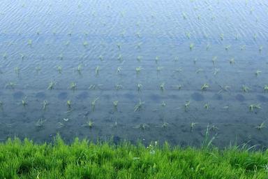 Keywords: paddy field water spring japan green grass rice