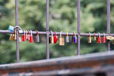 Keywords: padlocks padlock of lovers bridge metal bridge lovers romantic rust heart old bridge