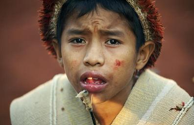 | Keywords: paï tavyterä paraguay guaraní portrait people PÄI TAVYTERÄ (significa: los habitantes del centro de la tierra) son indígenas guaraní que se encuentran en los Deptos. de Amambay, Concepción y Canindeyú (Paraguay). Antiguamente su territorio tradicional se extendía desde el noroeste de la Región Oriental del Paraguay, hasta el Estado de Matto Grosso, en el Brasil. Viven actualmente en comunidades o TEKOHA. Cultivan maíz, mandioca, poroto, arroz, caña de azúcar y algodón. Otra fuente de alimentación es la caza de animales silvestres, como el venado, el tapir y el cerdo silvestre. También los ríos ofrecen buenas posibilidades de pesca. Todo esto se complementa con la recolección de frutos del monte, y la miel silvestre. Habitan en grandes casas comunales de 15 o más metros de largo, no se distingue techo y pared y tienen tres entradas, en el norte, el sur y el este. Los rituales religiosos están compuestos, principalmente, por plegarias cantadas y danzas que se realizan en ocasión de las fiestas comunitarias y familiares. Acompañan diversos instrumentos musicales, como maracas adornadas con plumas de tucán, flautas y bastones de ritmo. Como todos los guaraní, en sus cantos y oraciones manifiestan su profundo relacionamiento con los seres sobrenaturales. PÄI TAVYTERÄ (significa: los habitantes del centro de la tierra) son indígenas guaraní que se encuentran en los Deptos. de Amambay, Concepción y Canindeyú (Paraguay). Antiguamente su territorio tradicional se extendía desde el noroeste de la Región Oriental del Paraguay, hasta el Estado de Matto Grosso, en el Brasil. Viven actualmente en comunidades o TEKOHA. Cultivan maíz, mandioca, poroto, arroz, caña de azúcar y algodón. Otra fuente de alimentación es la caza de animales silvestres, como el venado, el tapir y el cerdo silvestre. También los ríos ofrecen buenas posibilidades de pesca. Todo esto se complementa con la recolección de frutos del monte, y la miel silvestre. Habitan en grandes casas comunales de 15 o más metros de largo, no se distingue techo y pared y tienen tres entradas, en el norte, el sur y el este. Los rituales religiosos están compuestos, principalmente, por plegarias cantadas y danzas que se realizan en ocasión de las fiestas comunitarias y familiares. Acompañan diversos instrumentos musicales, como maracas adornadas con plumas de tucán, flautas y bastones de ritmo. Como todos los guaraní, en sus cantos y oraciones manifiestan su profundo relacionamiento con los seres sobrenaturales. |