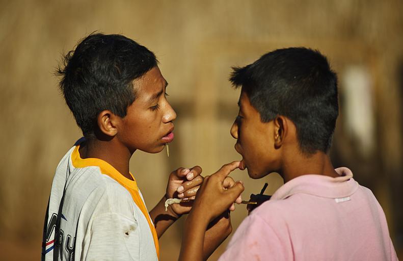 Keywords: paï tavyterä paraguay guaraní people PÄI TAVYTERÄ (significa: los habitantes del centro de la tierra) son indígenas guaraní que se encuentran en los Deptos. de Amambay, Concepción y Canindeyú (Paraguay). Antiguamente su territorio tradicional se extendía desde el noroeste de la Región Oriental del Paraguay, hasta el Estado de Matto Grosso, en el Brasil. Viven actualmente en comunidades o TEKOHA. Cultivan maíz, mandioca, poroto, arroz, caña de azúcar y algodón. Otra fuente de alimentación es la caza de animales silvestres, como el venado, el tapir y el cerdo silvestre. También los ríos ofrecen buenas posibilidades de pesca. Todo esto se complementa con la recolección de frutos del monte, y la miel silvestre. Habitan en grandes casas comunales de 15 o más metros de largo, no se distingue techo y pared y tienen tres entradas, en el norte, el sur y el este. Los rituales religiosos están compuestos, principalmente, por plegarias cantadas y danzas que se realizan en ocasión de las fiestas comunitarias y familiares. Acompañan diversos instrumentos musicales, como maracas adornadas con plumas de tucán, flautas y bastones de ritmo. Como todos los guaraní, en sus cantos y oraciones manifiestan su profundo relacionamiento con los seres sobrenaturales. PÄI TAVYTERÄ (significa: los habitantes del centro de la tierra) son indígenas guaraní que se encuentran en los Deptos. de Amambay, Concepción y Canindeyú (Paraguay). Antiguamente su territorio tradicional se extendía desde el noroeste de la Región Oriental del Paraguay, hasta el Estado de Matto Grosso, en el Brasil. Viven actualmente en comunidades o TEKOHA. Cultivan maíz, mandioca, poroto, arroz, caña de azúcar y algodón. Otra fuente de alimentación es la caza de animales silvestres, como el venado, el tapir y el cerdo silvestre. También los ríos ofrecen buenas posibilidades de pesca. Todo esto se complementa con la recolección de frutos del monte, y la miel silvestre. Habitan en grandes casas comunales de 15 o más metros de largo, no se distingue techo y pared y tienen tres entradas, en el norte, el sur y el este. Los rituales religiosos están compuestos, principalmente, por plegarias cantadas y danzas que se realizan en ocasión de las fiestas comunitarias y familiares. Acompañan diversos instrumentos musicales, como maracas adornadas con plumas de tucán, flautas y bastones de ritmo. Como todos los guaraní, en sus cantos y oraciones manifiestan su profundo relacionamiento con los seres sobrenaturales.