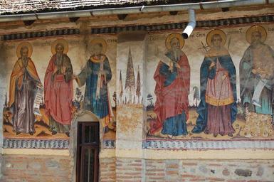 | Keywords: Painted church exterior.JPG en Painted exterior of Olari the thatched Orthodox church in Curtea de Arges own Lawson Speedway 2007 Curtea de Argeș Romanian Orthodox churches in Argeș County Orthodox murals in Romania Murals and icons on the exterior of churches |