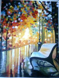 Keywords: Painting-1.JPG en About painting -1- It depicts a rainy day a street with street light falling on a chair own Vijaymoreb1 No Its my first time A rainy day with light effect Paintings with signatures Rain in art Trees in art