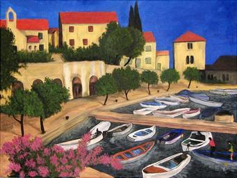 Keywords: painting acrylic colorful art landscape color water boats