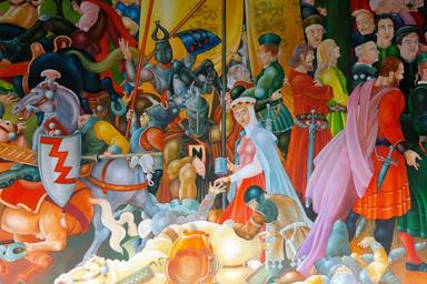 Keywords: painting human image colorful color canvas dynasty house of hohenstaufen artists sandra round image round image chapter hall monastery of lorch ride horses hans kloss shield lance knight