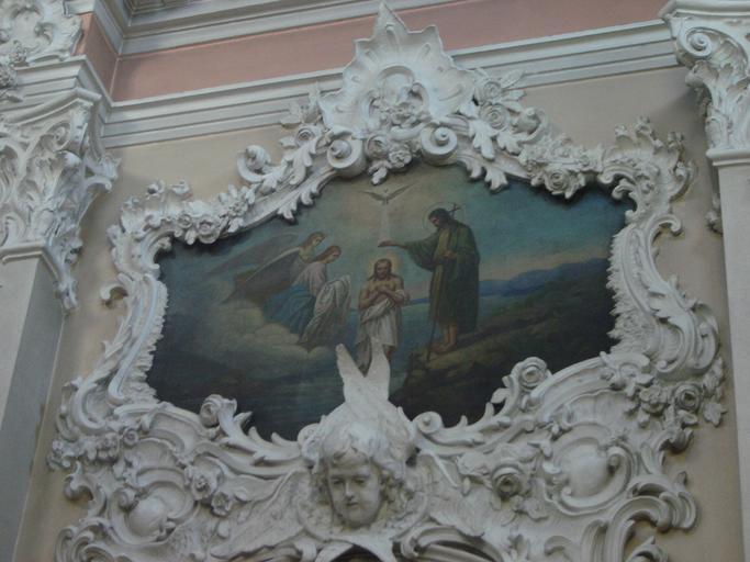 | Keywords: Painting in Orthodox Church of the Holy Spirit in Vilnius.jpg  Ф еска К ещение Х иста об амленная лепниной в стиле ба окко в це кви Святого Духа в Вильнюсе Литва own Reytan Reytan Paintings of the baptism of Jesus Christ Orthodox Church of the Holy Spirit in Vilnius |