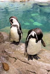 Keywords: pair bowing penguin tuxedo bird black and white zoo