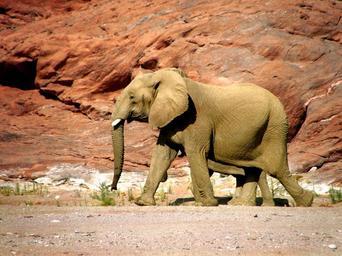 Keywords: elephant wild animal leathery red canyon sand cliffs hills stone desert bare desolate namibia