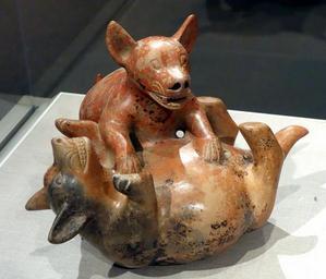 | Keywords: Pair of joined, playing dogs, West Mexico, Colima, 300 BC to 300 AD, earthenware - De Young Museum - DSC00457.JPG en Exhibit in the De Young Museum San Francisco California USA This artwork is in the public domain because the artist died more than 70 years ago Photography was permitted in the museum without restriction 2013-11-05 15 14 40 own Daderot other versions cc-zero Colima pottery in the De Young Museum Uploaded with UploadWizard | ||||