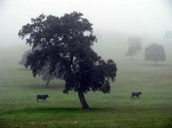 Keywords: Paisaje con toros.jpg en Dehesa en Baños de la Encina es Dehesa en Baños de la Encina Own Guanob Baños de la Encina Nature of the province of Jaén Unidentified trees