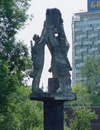 Keywords: Pal Pomnika Saperów.jpg Pal z postaciami trzech saperów - jedna z części Pomnika Chwała Saperom w Warszawie Widok z nurtu Wisły Autor Piotr Biegała - HeAVenlY Chwała Saperom Monument in Warsaw