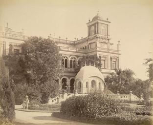 | Keywords: Palace at Makarpura, Zenana Porch - Baroda in the 1890s.jpg en Photograph of the Makarpura Palace near Baroda Gujarat from the Curzon Collection taken by an unknown photographer during the 1890s The palace was built by the Gaekwar Sayaji Rao III ruled 1875-1939 between 1883-1890 as a country residence and designed by Robert Fellowes Chisholm 1840-1915 in an Italian Renaissance style It lies to the south of Baroda and is surrounded by English-style formal gardens This view shows the entrance to the zenana or women ™s apartments with flights of steps leading up to a chhatra porch in the foreground This is in the form of a bangaldar or Bengali-style curved roof which contrasts with the classical facade behind s 1890 http //www oldindianphotos in/2010_07_05_archive html author other versions Custom license marker 2014 11 26 PD-100 Vadodara in the 1890s Uploaded with UploadWizard Makarpura Palace British Library Photo 430 Curzon Collection |