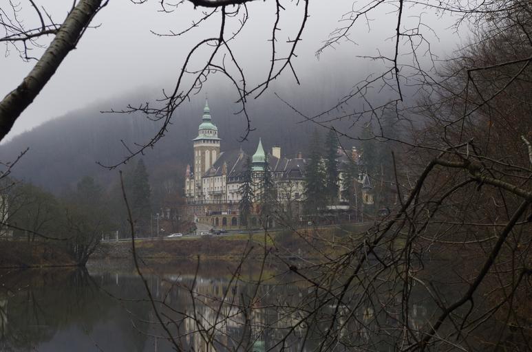 Keywords: palace castle lake forest lake mountains mountain mysterious fog autumn romantic