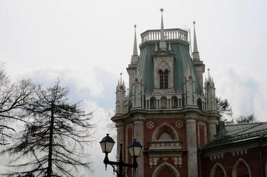 Keywords: palace gothic russian building red white light green towers eerie unusual historic catherine the great