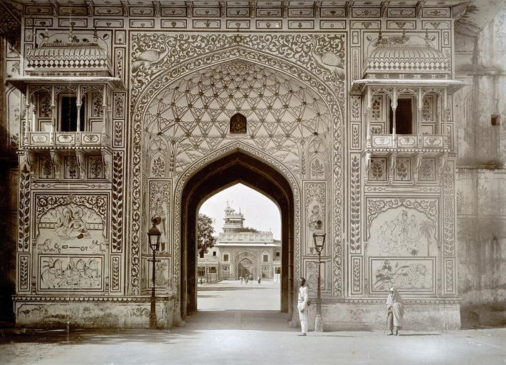 | Keywords: Palace, Jeypur.jpg en Palace Jeypur http //www bl uk/onlinegallery/onlineex/apac/photocoll/p/019pho000430s21u00045000 html Deen Dayal Lala 1844-1905 1895 PD-old City Palace Jaipur Gates in Rajasthan Arches in India Historical images of Jaipur 1895 in India Corbels in India Frescos in India Portals in India Black and white photographs by Lala Deen Dayal |