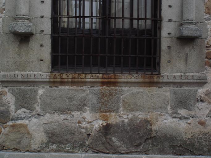 | Keywords: Palacio Dávila, Ávila. Donde una puerta se cierra otra se abre.JPG Inscripción inferior de la ventana principal del palacio Dávila Ávila Donde una puerta se cierra otra se abre Own 2007-06 Manuel Parada López de Corselas Manuel de Corselas http //www arssummum es ARS SUMMUM Centro para el Estudio y Difusión Libres de la Historia del Arte Dávila's Palace Ávila Windows in the province of Ávila | ||||