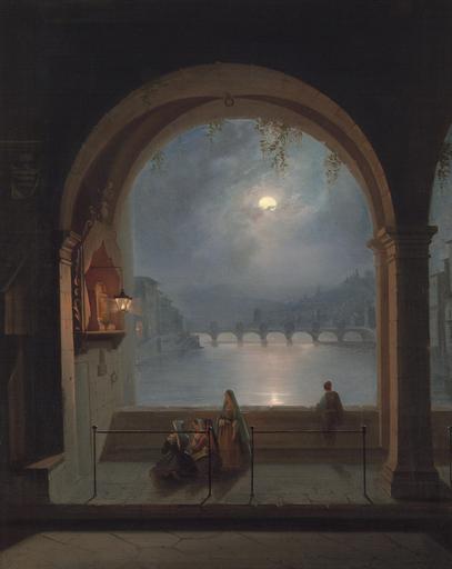 | Keywords: Paladini Blick über den Arno 1862.jpg Vollmondnacht Blick vom Ponte Vecchio in Florenz über den Arno Öl auf Leinwand 62 x 50 cm Unten rechts auf dem Treppenabsatz signiert und datiert S Paladini f 1862 http //bassenge com/ Galerie Bassenge 1862 S Paladini PD-old Images from Galerie Bassenge 1862 paintings Moon in art Bridges in art Paintings of Florence Arno River in Florence in art 1862 in Florence | ||||