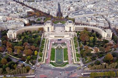 Keywords: palais de chaillot palace building park garden lawn flora floral foliage aerial view trocadero paris france