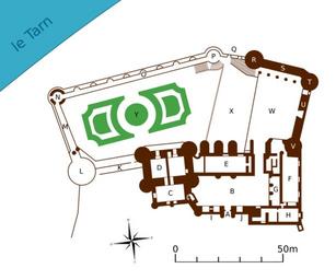 | Keywords: Palais de la Berbie.svg Palais de la Berbie à Albi <br/>A Porte fortifiée <br/>B Cour centrale <br/>C Tour St Michel <br/>D Tour Ste-Catherine ou tour majeure <br/>E Aile des Suffragants <br/>F Aile d'Amboise <br/>G Galerie de Daillon du Lude <br/>H Aula logement de Durand de Beaucaire et chapelle <br/>I Courtine de Durand de Beaucaire <br/>J Courtine et tour carrée <br/>K Rampe d'accès au jardin <br/>L Tour-éperon à bec <br/>M S et U Courtine de Bernard de Castanet <br/>N Tour de la Rivière <br/>O et Q Courtine du XIV<sup>e</sup> <br/>P Tour de Dyinisos <br/>R Tour de la bibliothèque <br/>T Tour de l'octogone <br/>V Tour d'Amboise <br/>W Terrasse <br/>X Contre-terrasse <br/>Y Jardin 2016-04-07 http //www cite-episcopale-albi fr/IMG/jpg/ill_018 jpg SyntaxTerror other versions Palais de la Berbie |