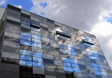 Keywords: palazzo stained glass reflection clouds sky height architecture mirror windows