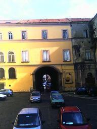 Keywords: Palazzopinellicort1.jpg en courtyard's view from stairway it Vista del cortile dalla scalinata own Pinotto992 Giugliano in Campania