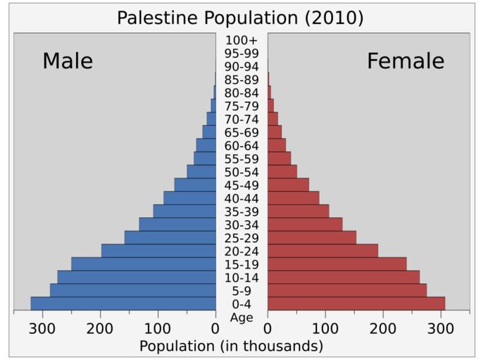 | Keywords: Palestinepop-2010.svg translate yes en Population pyramid of Palestine in 2010 from UN estimates World Population Prospects http //esa un org/unpd/wpp/Download/Standard/Population/ The 2015 Revision 2016-05-26 own Delphi234 other versions cc-zero Population pyramids of Palestine |