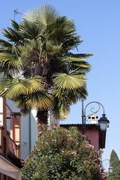 Keywords: palm arecaceae fan palm plant flora botany lantern street lamp home building architecture