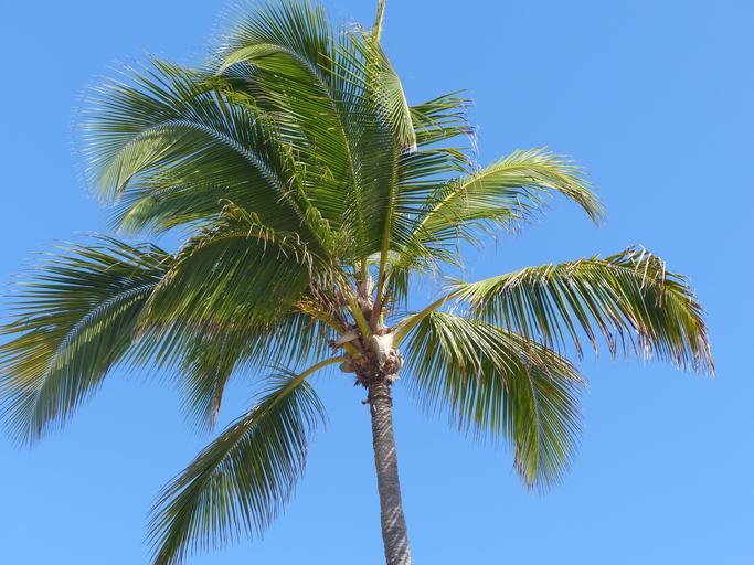 Keywords: palm frond sky partly cloudy blue holiday