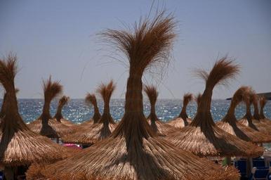 Keywords: palm roofs sea sun sunset water romantic atmospheric rest ocean evening sky abendstimmung beach sky coast evening