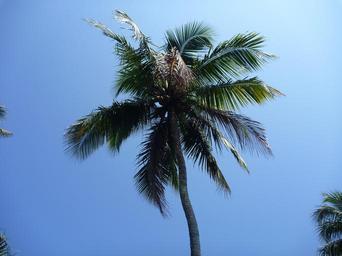 Keywords: palm tree blue sky leaves paradise tropical island holiday tranquil exotic caribbean tropics vacation nature