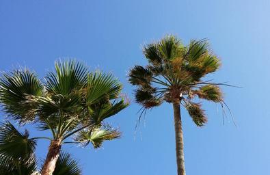 Keywords: palm trees green summer sunny palm fronds
