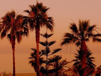Keywords: palm trees sunset sand beach orange beautiful nature