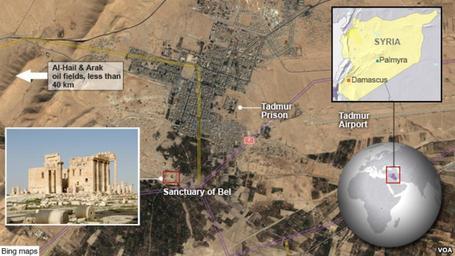 | Keywords: Palmyra Syria.png Palmyra Syria http //gdb voanews com/E1A73707-0CB1-448C-A455-E6E9AB6BBD94_mw1024_s_n png VOA 2015-05-21 PD-USGov-VOA Sources http //www voanews com/content/islamic-state-gains-ground-as-palmyra-falls-to-militants/2782607 html Islamic State Takes Palmyra Gains Control of Syria-Iraq Border Voice Of America 21 May 2015 by Carla Babb Webarchive http //www webcitation org/6dCtHY3Vc http //www voanews com/content/islamic-state-seizes-ancient-ruins-in-syrias-palmyra/2780615 html IS Poised to Seize Huge Syrian Arms Depot Voice Of America 21 May 2015 by Jamie Dettmer Webarchive http //www webcitation org/6dCtVo1zT http //learningenglish voanews com/content/islamic-state-fighters-capture-two-major-cities/2784166 html Islamic State Militants Capture Two Major Cities Voice Of America 22 May 2015 Webarchive http //www webcitation org/6dCu6q3qg http //learningenglish voanews com/content/in-the-news-may-27/2793093 html Islamic State Executes 20 in Palmyra Roman Theater Voice Of America 27 May 2015 Webarchive http //www webcitation org/6dCtt7nB7 http //www voanews com/content/ap-un-calls-destruction-of-heritage-sites-by-islamic-state-a-war-crime/2841640 html UN IS Destruction of Heritage Sites May Be War Crime Voice Of America 29 June 2015 AP ; Webarchive http //www webcitation org/6dCsM9sF5 http //www voanews com/content/palmyra-temple-destruction-a-crime-against-civilization/2941073 html UN Palmyra Temple Destruction a 'Crime Against Civilization Voice Of America 1 September 2015 by Kokab Farshori Webarchive http //www webcitation org/6dCtjAtyk Palmyra |
