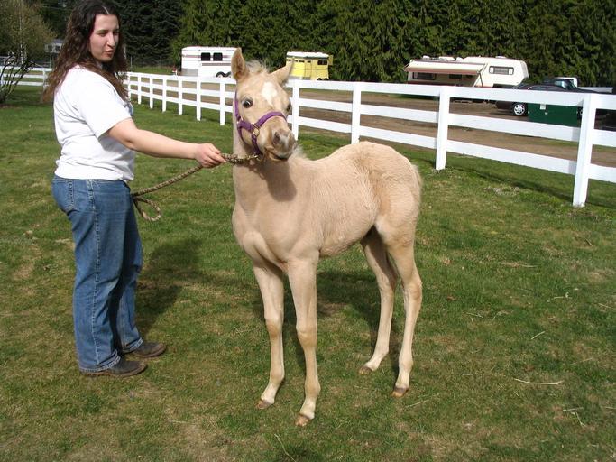 | Keywords: horses palomino colt outdoor animal In this picture the colt, named Bear, is about two months old. He is accompanied by a stablehand holding his lead. CC0 waiver: To the extent possible under law, I waive all copyright and related or neighboring rights to this work. In this picture the colt, named Bear, is about two months old. He is accompanied by a stablehand holding his lead. CC0 waiver: To the extent possible under law, I waive all copyright and related or neighboring rights to this work. |