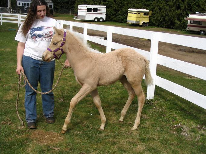 | Keywords: horses palomino colt animal outdoor In this picture the colt, named Bear, is about two months old. He is accompanied by a stablehand holding his lead. CC0 waiver: To the extent possible under law, I waive all copyright and related or neighboring rights to this work. In this picture the colt, named Bear, is about two months old. He is accompanied by a stablehand holding his lead. CC0 waiver: To the extent possible under law, I waive all copyright and related or neighboring rights to this work. |