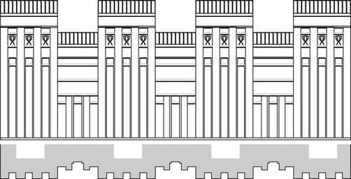 | Keywords: Palotahomlokzat.svg en Palace facade reconstruction of 1st dynasty Based on drawing from cite book Kákosy László Varga Edith Egy évezred a Nílus völgyében Memphisz az Óbirodalom korában Hungarian 151 Budapest Gondolat 1970 a szócikkben készült saját rajz own HoremWeb 2009-08-21 Ancient Egyptian architecture |