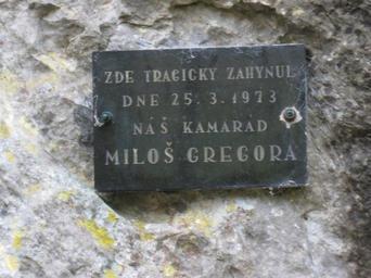 Keywords: Pamětní deska - Holštejn.jpg cs Pomníček na památku chlapce který zahynul při pádu ze skály vlastní fotografie John commons 4 11 2012 Hladomorna cave Holštejn Castle Cc-zero