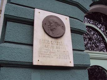 Keywords: Pamětní deska na Arbesově škole.jpg cs Deska na Arbesově škole připomínající jeho zdejší uvěznění own Zákupák 2009-11-16 Sculptures in Česká Lípa Plaques in Česká Lípa Jakub Arbes Moskevská Česká Lípa Reliefs in Česká Lípa District
