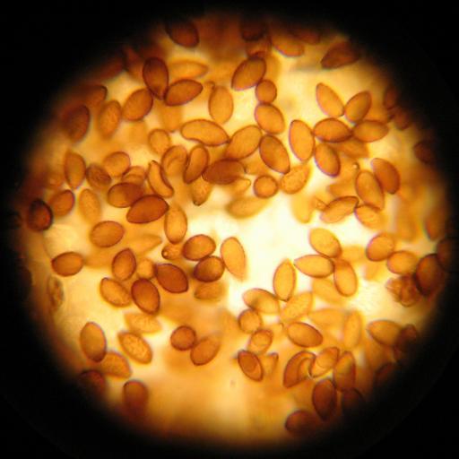 Keywords: Panaeolina foenisecii spores 3.jpg Panaeolina foenisecii spores 3 Own 06/13/07 Alan Rockefeller Panaeolina foenisecii Fungal spores