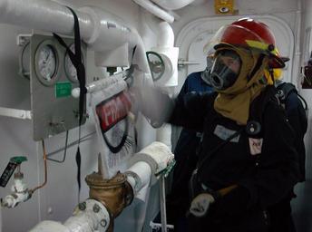 | Keywords: PANAMAX 2008 080805-N-UD522-004.jpg en Personnel Specialist 2nd Class SW Katie Robertson trains on a leaking pipe during a general quarters aboard amphibious assault ship USS Tarawa LHA 1 Tarawa is currently underway to participate in FA PANAMAX 2008 This excercise spells the final chapter for the Tarawa which is slated for decommissioning in early 2009 Until then Tarawa remains ready to answer the nation's call FA PANAMAX 2008 is a mulit-national training exercise tailored to the defense of the Panama Canal involving civil and military forces from the U S Southern Command area of focus FA PANAMAX involves more than 19 countries including forces and integrated staff members from Argentina Brazil Cananda Chile Colombia Costa Rica Dominican Republic Ecuador El Salvador Guatemala Honduras Mexico Nicaragua Panama Peru Spain Trinidad and Tobago Uruguay and the United States U S Navy photo by Mass Communication Specialist Seaman David A Brandenburg 2008-08-05 Petty Officer 2nd Class David Brandenburg https //www dvidshub net/image/1476876 080805-N-UD522-004 2014-08-01 20 04 USS TARAWA LHA 1 AT SEA PD-USGov-Military-Navy PANAMAX 2008 Images from DoD uploaded by Fæ |
