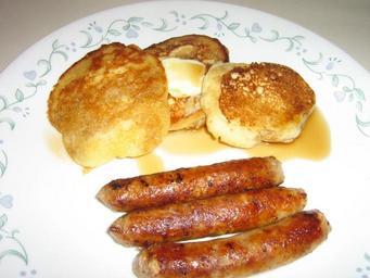 Keywords: pancakes pork sausage maple syrup butter canadian breakfast
