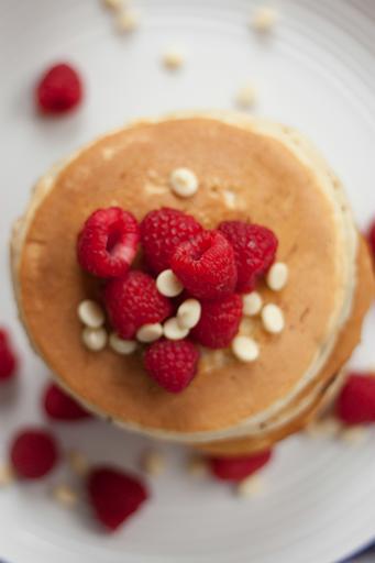 Keywords: pancakes raspberries fruits breakfast food